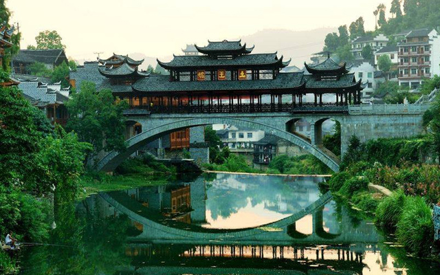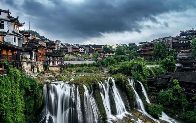 Nằm tại tỉnh Hồ Nam – Trung Quốc, Phù Dung Trấn là một thị trấn cổ được rất nhiều khách du lịch yêu thích đặc cho cái tên “Cổ trấn treo trên thác nước”. Đây là cổ trấn lâu đời nhất ở Trung Hoa có tuổi đời khoảng 2000 năm lịch sử. Cổ trấn này đã được lấy làm bối cảnh trong phim “Phù Dung Trấn” khiến cho nơi đây trở thành địa điểm du lịch nổi tiếng hơn. Với nhiều cảnh quan đẹp tựa chốn thiên đường, những ngôi nhà nhỏ lấp ló đầy vẻ ma mị được tô điểm bởi ngọn thác hùng vĩ tung nước trắng xóa cả một vùng trời, những hàng cây xanh mướt cùng những con đường uốn quanh thị trấn như tấm lụa vàng mềm mại tạo nên một bức tranh Phù Dung Trấn đẹp mơ màng.